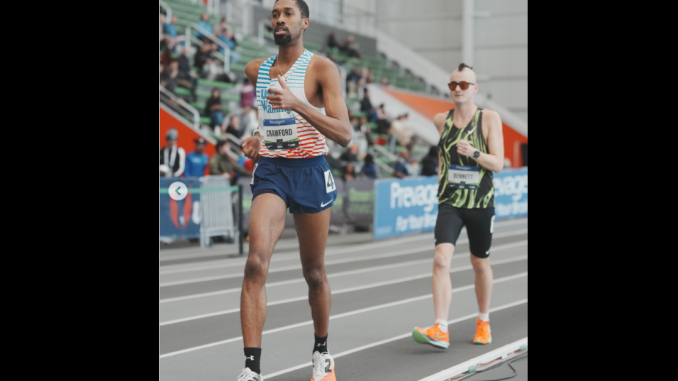 Walking solo for all of the race, Jordan Crawford finished a strong 2nd at the USATF Indoor Championships in the 5000m Race Walk. His time of 21:15.02 is an indoor best (also better than his outdoor time of 21:20.97) and new team record for the distance.